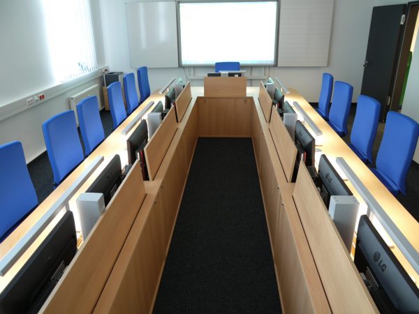 Schulungs- und Konferenzräume mit versenkbaren 27″ Monitoren (retractable Monitors)